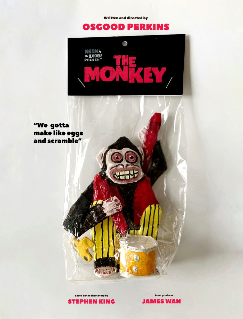 In collaboration with The Searchers and Neon Rated I made an alternative poster for the horror comedy ‘The Monkey’. This came accompanied by a giveaway of 2 duo tickets to go see the movie. (The competition runs on Instagram only until 26/2) For this poster I chose to use a paper maché handmade monkey to compliment the playfulness of the monkey’s original intent: being a toy. Unfortunately for the characters in the movie, it turned out to be evil.